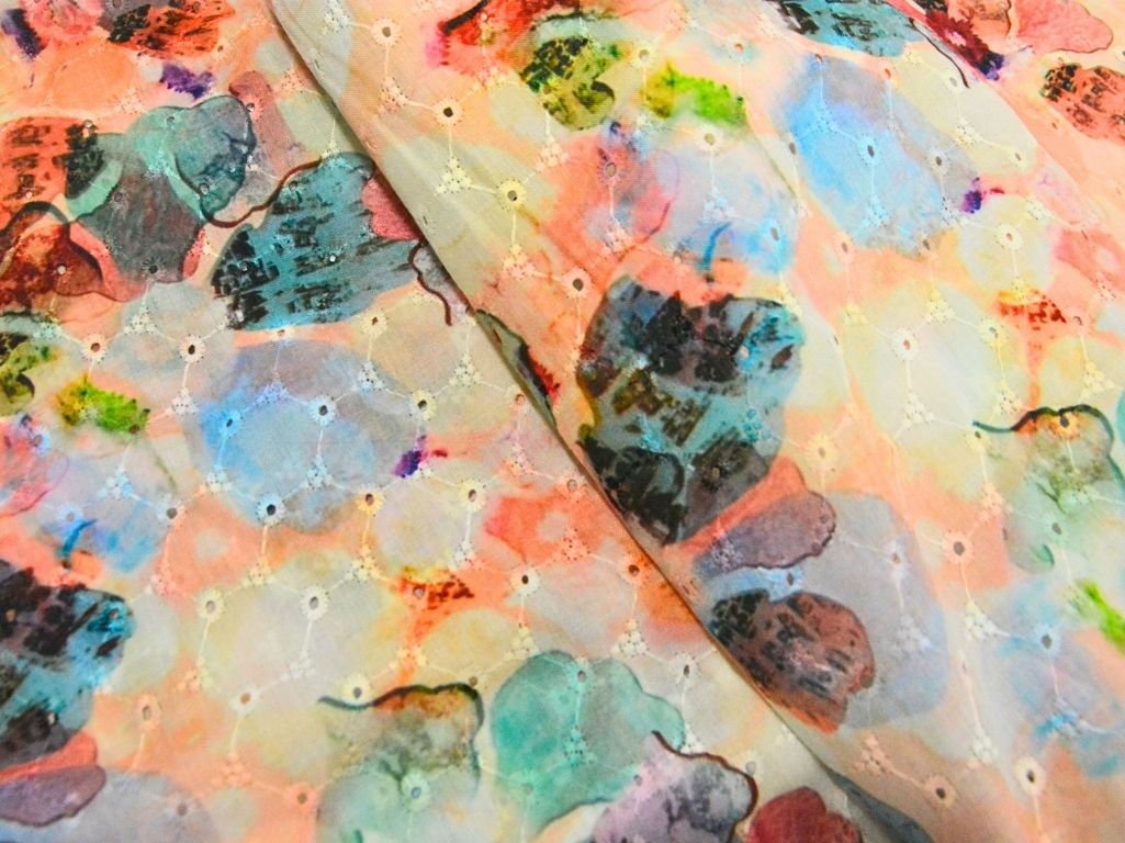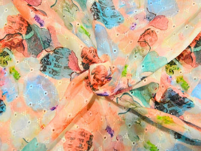Peach 100 % Pure Cotton Chikan Embroidered Fabric
