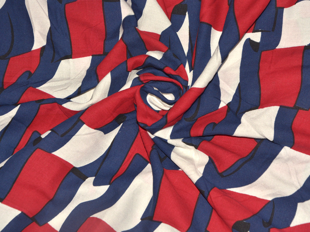 Precut of 1.5 Meter Red & Blue Abstract Printed Rayon Fabric