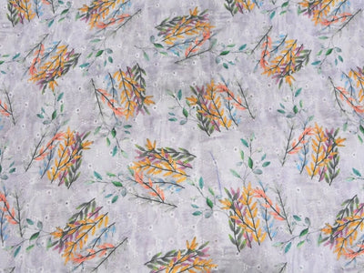 Light Purple 100 % Pure Cotton Chikan Embroidered Fabric