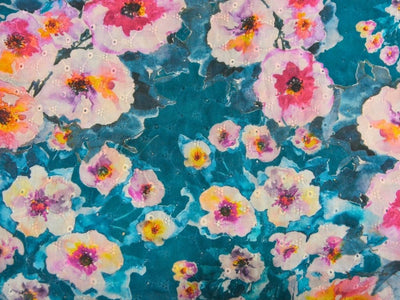Pure cotton Chikan embroidered fabric is a lightweight, breathable textile known for its intricate hand embroidery, originally from Lucknow, India. Made from 100% cotton, this fabric features delicate, white-on-white or colored thread embroidery using traditional Chikankari techniques. The designs often include floral patterns, paisleys, and fine motifs, giving the fabric a graceful and elegant appearance. It is ideal for making ethnic wear like kurtas, sarees, and dupattas, as well as contemporary outfits due to its comfort and timeless aesthetic. Chikan embroidery adds a touch of subtle elegance, making this fabric popular for both casual and festive occasions.