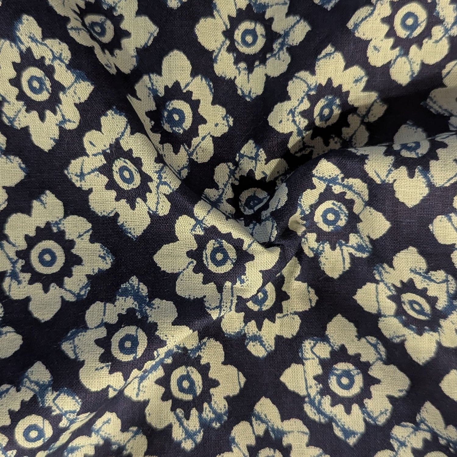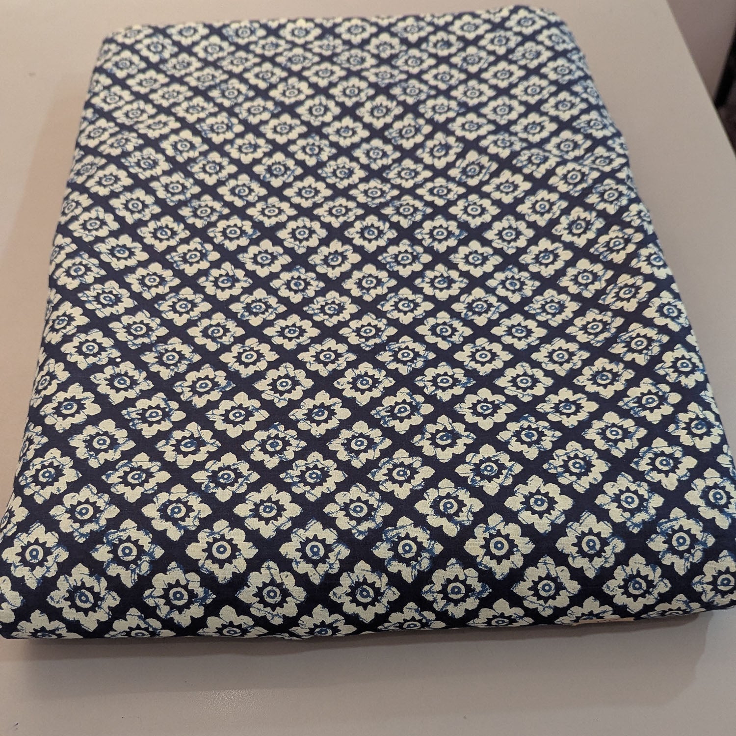 Small Geometrical Motif Blue Print Cotton Fabric