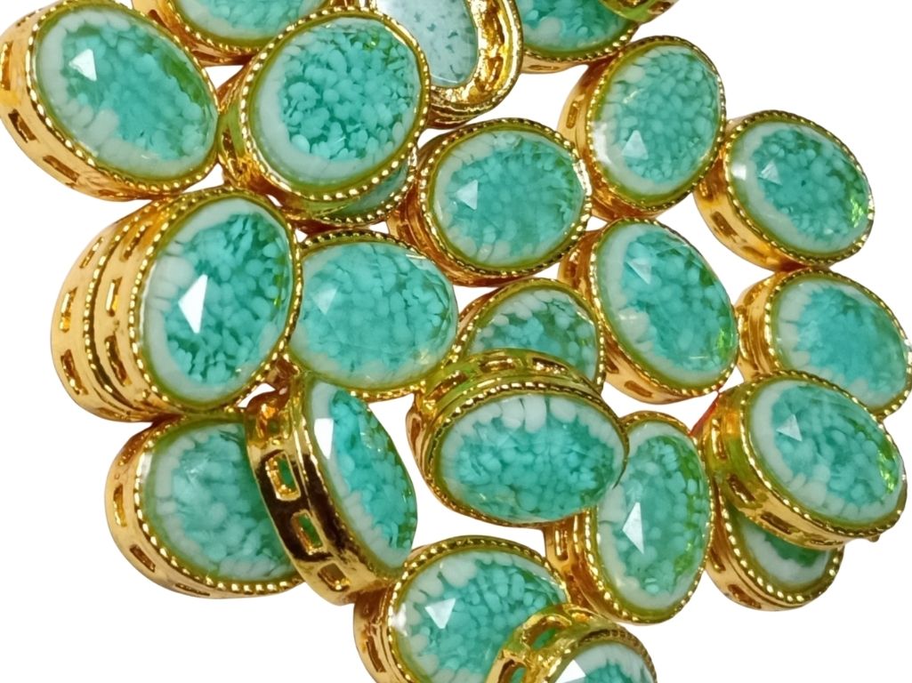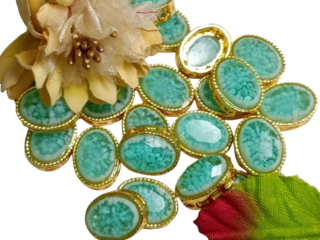 Teal Oval Shaped Resin Stones with Metal Catcher
