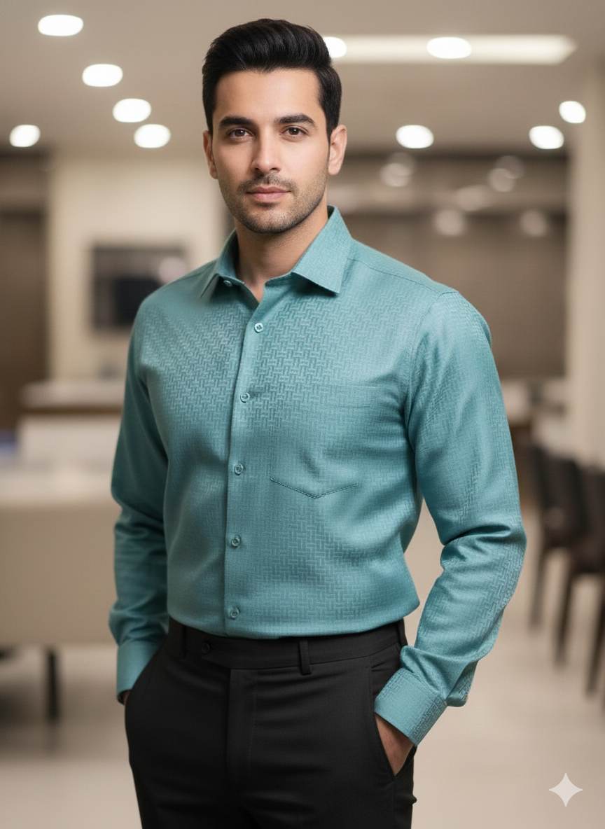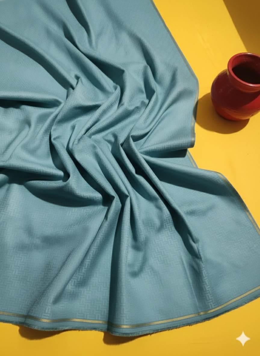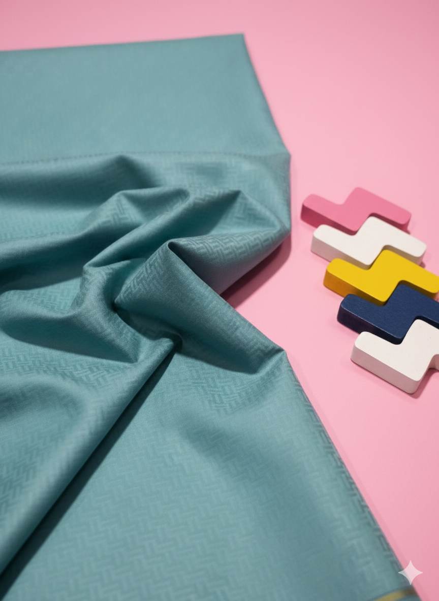 Turquoise Blue Self Pattern Cotton Shirting Fabric