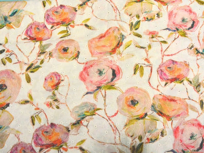 Pure cotton Chikan embroidered fabric is a lightweight, breathable textile known for its intricate hand embroidery, originally from Lucknow, India. Made from 100% cotton, this fabric features delicate, white-on-white or colored thread embroidery using traditional Chikankari techniques. The designs often include floral patterns, paisleys, and fine motifs, giving the fabric a graceful and elegant appearance. It is ideal for making ethnic wear like kurtas, sarees, and dupattas, as well as contemporary outfits due to its comfort and timeless aesthetic. Chikan embroidery adds a touch of subtle elegance, making this fabric popular for both casual and festive occasions.