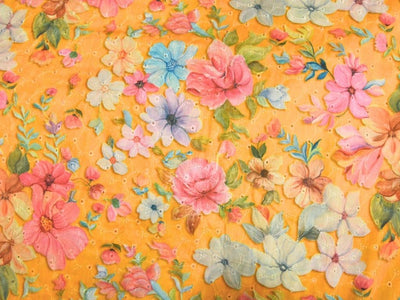 Yellow 100 % Pure Cotton Chikan Embroidered Fabric